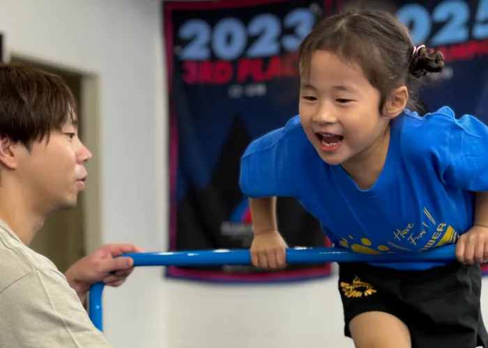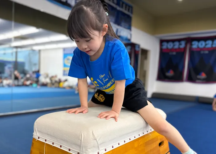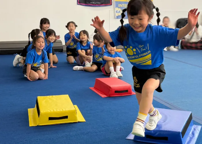跳び箱・鉄棒・マット運動。「競技」ではなく、お子様の成長に合わせ、楽しみながら全身をコントロールする力を養うクラスです。